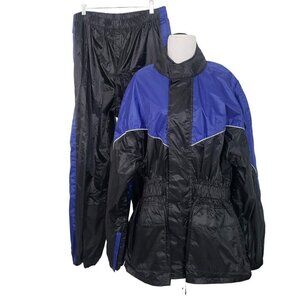 Thunder Under Rain Gear Mens Black and Blue Motorcycle Black Jacket Pants Suit Set Size Medium