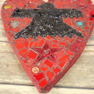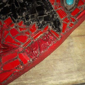 Thunderbird Heart Wall Art Mixed Media Red Black Native American Horse Western Collage Mosaic