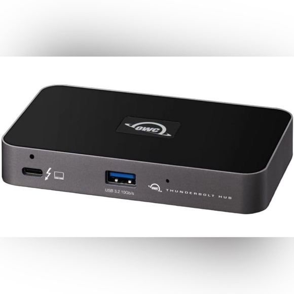 Enhance your connectivity with the Thunderbolt Hub. This sleek black hub offers multiple ports for seamless integration with your devices. Perfect for expanding your computer's capabilities.