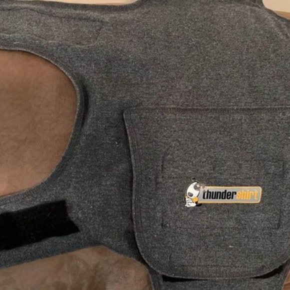 One used gray Thundershirt for a medium dog (manufacturer uses 26-40lbs for that size). This shirt was used for a mutt that was about the size/length of a corgi and it worked GREAT for fireworks and storms (so long as I got it on in time)! This is like swaddling a dog!