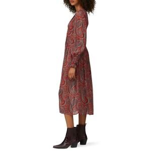 Thurley Golders Dress Paisley Boho Long Balloon Sleeve V-Neck A-Line Midi Red 4