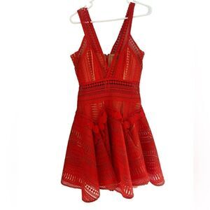 Crafted from a modern, structured lace, this feminine and chic silhouette is guaranteed to turn heads! Featuring a playful voluminous flounce mini skirt and a fitted bodice with plunging neckline, this vibrant lace dress by Thurley is perfect to rent for an upcoming cocktail party or night out with friends!