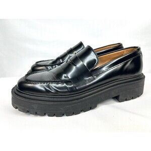 Thursday Boot Co. Penny Platform Lug Sole Loafer Black Leather Platform Sz 9.5