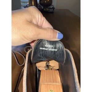 Good pre-owned condition with light scuffs and normal wear. Small repair to front sole (see photos). Clean, sturdy, and ready to wear.