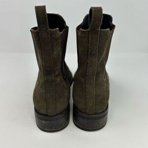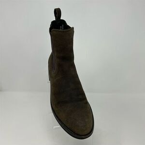 Keywords: Thursday Boot Company, women's Chelsea boots, size 9, brown suede boots, casual fall boots, round toe boots, elastic side panels, durable rubber outsole, pull on boots, medium width boots, solid pattern boots, pre-owned women's boots, New York made boots, suede Chelsea boots, women's fall footwear.
