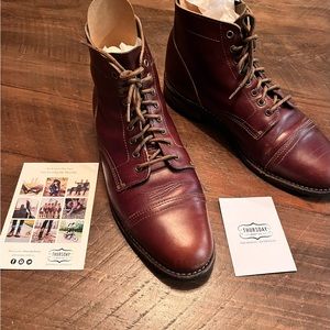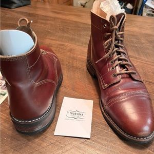 Stylish brown leather boots. Durable construction. Lace-up design. Perfect for any occasion.