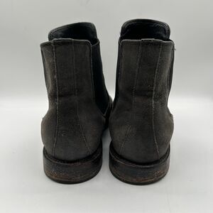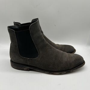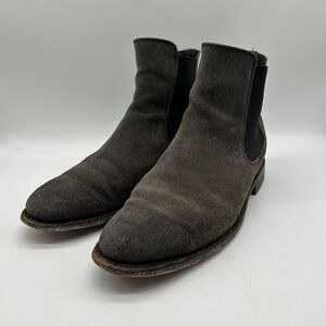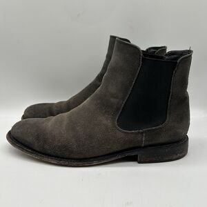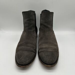 Stylish gray suede boots. Sleek design with elastic side panels. Perfect for versatile wear.