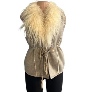 Elevate your style with this chic beige vest featuring a luxurious faux fur collar. Perfect for layering, this vest adds a touch of elegance to any outfit.