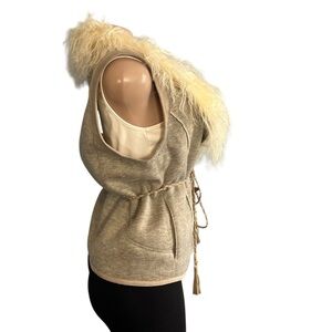 Thursday Island Beige & Grey Boho Faux Fur Vest Gilet in size Medium.