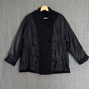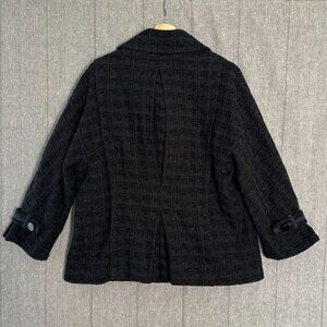 Thursday Island Black Tweed Portrait Collar 3/4 Sleeve Double Breasted Coat Size Medium