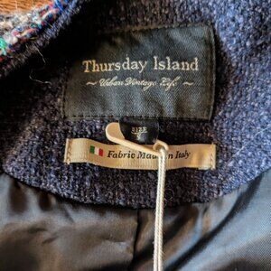 Brand new Thursday Island jacket from classy Korean brand. Never worn, made ethically in Italy. Originally priced 459,000 Korean won or 332 USD. This item can be styled new and trendily, or make a great vintage-esque piece. Size XS-Small