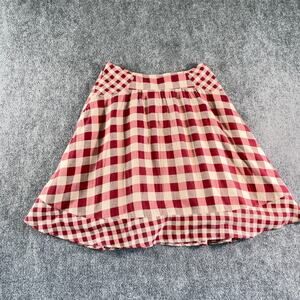 Thursday Island Red Tan Gingham Knee-Length A-Line Skirt Size S Cotton