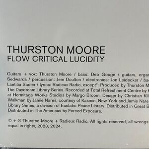 2024 release. Thurston returns with his ninth and best solo album Flow Critical Lucidity released via Daydream Library Series. Some of the songs were written and arranged in Europe and the United Kingdom and include lyrical references to their environments and inspired by nature, lucid dreaming, modern dance and Isadora Duncan.