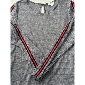 Thyme & Honey Women’s L Houndstooth Pattern With Black & Red Stripes Down Sleeve