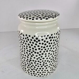 Thyme & Table Polka Dot Stoneware Jar With Lid Dishwasher Safe 5.5" Black & Whit