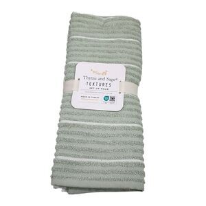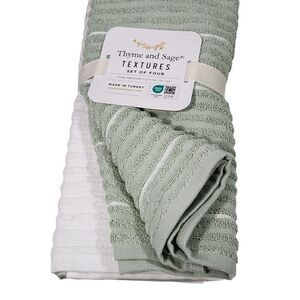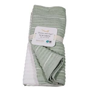 Thyme and Sage Kitchen Towel Set of 4pcs Green and White Striped 100% Cotton Made in Turkey