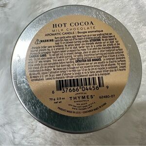 Thymes Hot Cocoa Milk Chocolate Travel Tin Candle 2.5 oz GIFT NEW