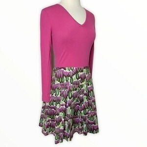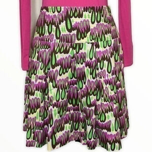 TiBi purple green multicolor abstract print retro a line skirt size 8