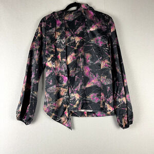 Tia Cibani Amethyst Satin Top Blouse Womens 4 Abstract Lagenlook Colorful NWT