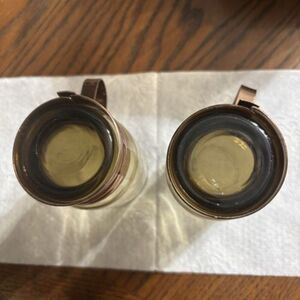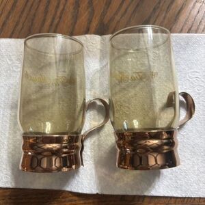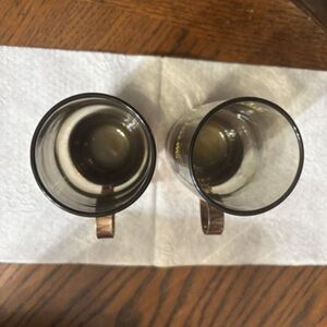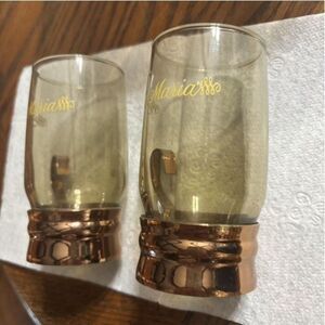 Tia Marie Liquer Set Of Smoked Glass Copper Base Cocktail Glasses. 4 1/2” tall. Good condition.