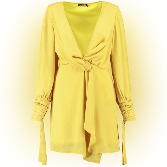 Tia Twist Front Ruched Sleeve Shift Dress