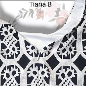 Tiana B. Black and White Lattice Print Fit/Flare Dress Size 16