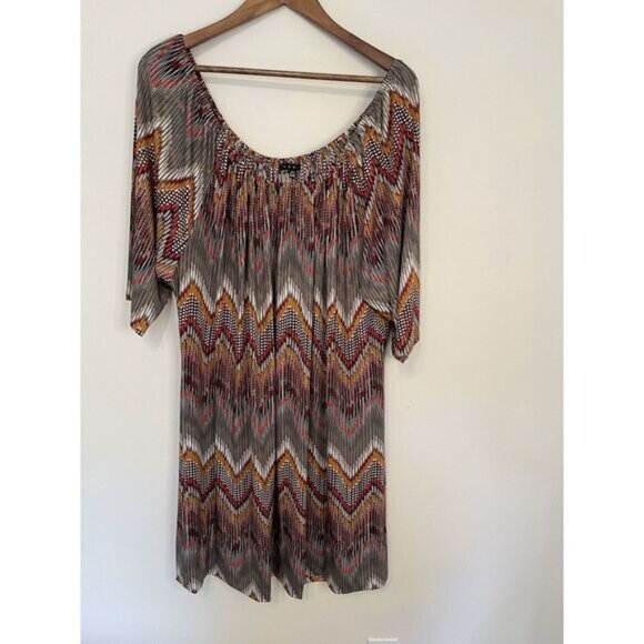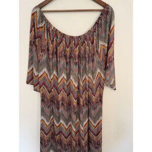 Tiana B Dress 20w Metallic Gold Chevron Colorful Boho Scoop Neckline Fall Color