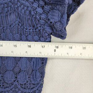 Tiana B Lace Sheath Pencil Dress Sz Large Navy Blue Crochet Overlay Short Sleeve