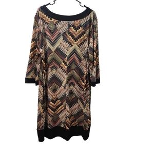 Tiana B Long Sleeve Geometric Print Knee Length Dress Fall Colors Plus Size 18W