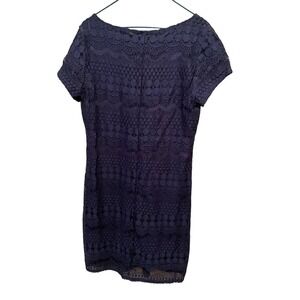 Tiana B Mini Sheath Dress Women Size L Blue Lace Short Sleeve Round Neck Nylon.
