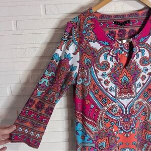 Tiana B Pink Colorful Geometric 3/4 sleeve Mini Dress, Women’s Size Medium