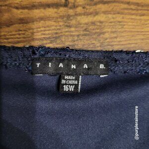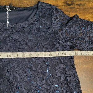 Tiana B Sequins Floral Lace Midi Dress 16 W Navy Dark Coquette Ethereal