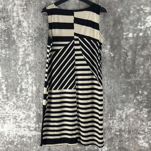 Tiana B Size L Striped Abstract Knee Length Shift Dress Ivory Black Sleeveless