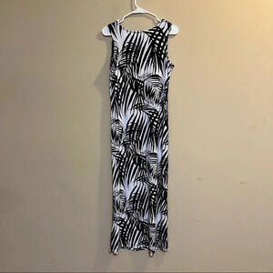 Tiana B. Sleeveless Black White Palm Leaf Printed Maxi Dress Slit Size S…