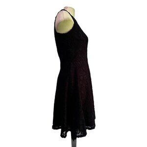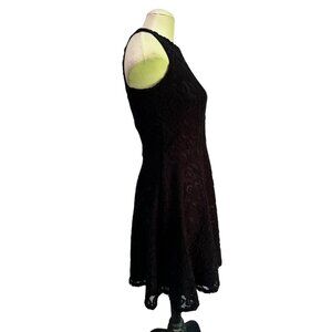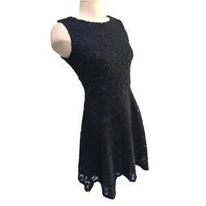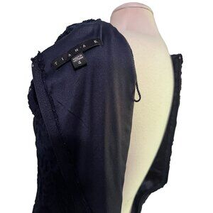 Tiana B Textured Lace A Line Dress Sz 4 Womens Navy Blue Knee Length Sheer Sleev