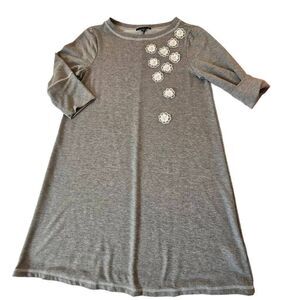 Tiana B Women's Heather Applique Flower Roll-Up Sleeve Shift T-shirt Dress Gray Medium