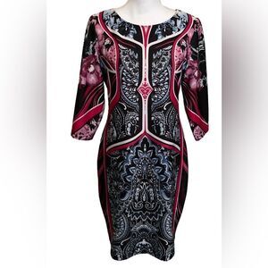 NWT TIANA B PRINTED BLACK RED SHIFT CAREER DRESS