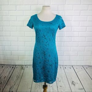 Tiana B. Turquoise Lace Sheath Cap Sleeve Dress - Size Small