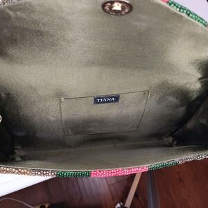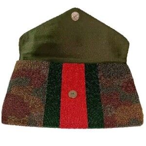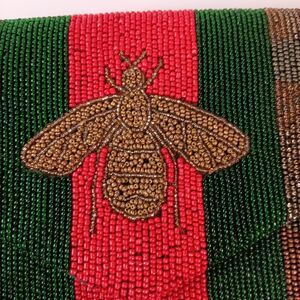 Tiana Beaded Bee Clutch Gold Red Green Stripe Camo Design Snap Closure 10" x 6"