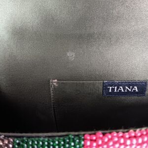 Tiana Beaded Bee Clutch Red Green Stripe Camo Design Snap Closure