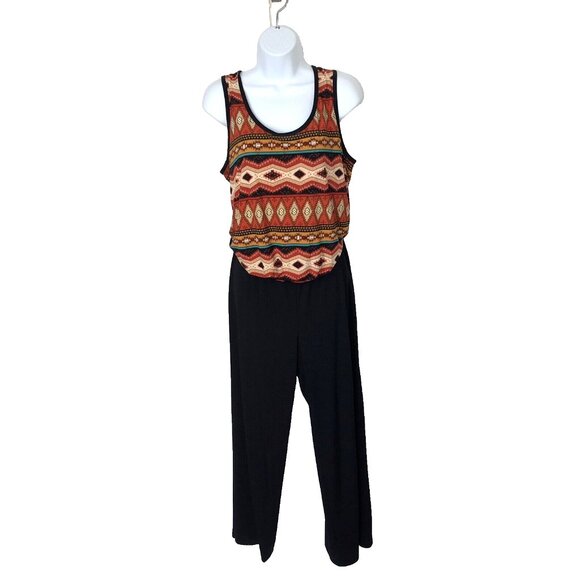 Tiana b Boho Hippie Jumpsuit Tribal Aztec Print Sleeveless Wide Leg Size Large