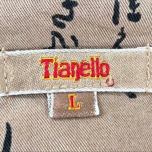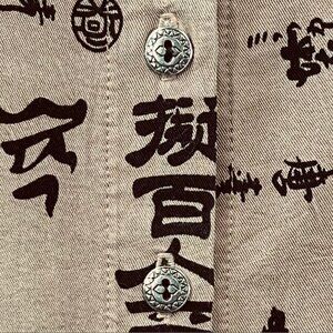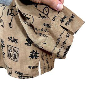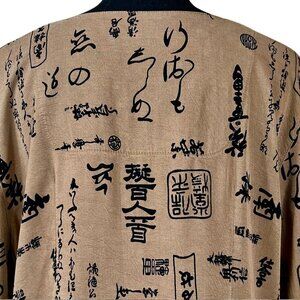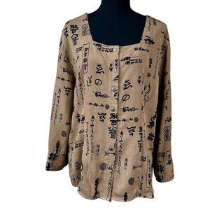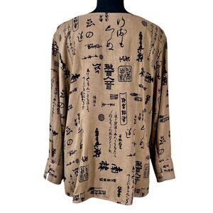Tianello Cocoa Brown Tencel Calligraphy Asian Long Sleeve Top Size L