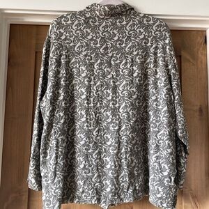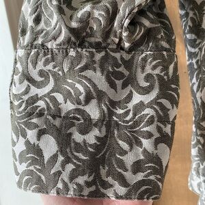 Tianello Floral button up Blouse Tunic Womens M Collared Brown/Cream Lagenlook