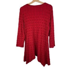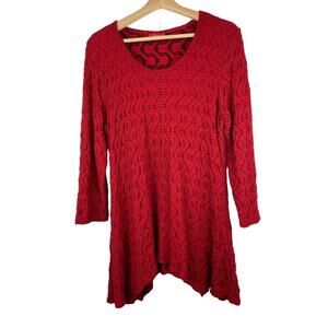 Tianello Women's Size L Red Black Textured Stretch Asbury Tunic Top. Pre-owned in very good condition, no rips, holes, or stains noted.