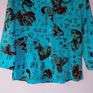Tianello M Blouse Japanese Print Button Collar 3/4 Sleeves