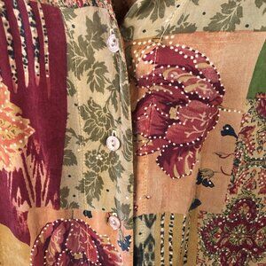 Tianello Shirt Womens Small Patchwork Floral Rayon Boho Made USA Button Front