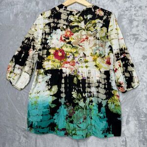 Tianello Top Womens XS Colorful Floral Embroidered Cotton Short Sleeve Boho