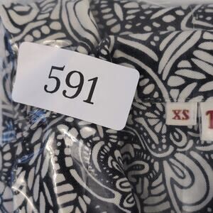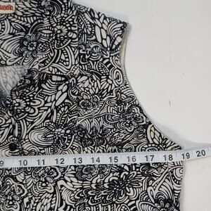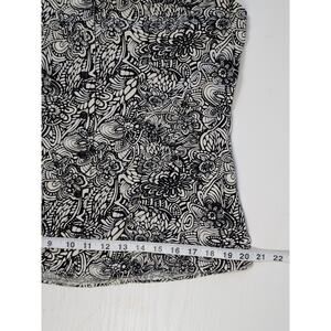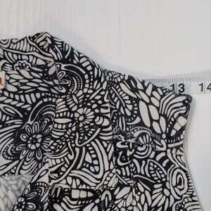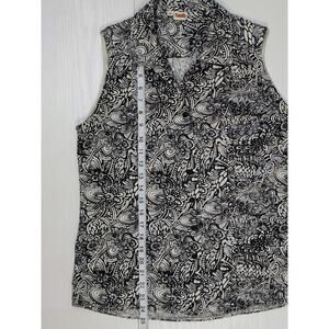 Tianello Womens XS Button Up Sleeveless Top Floral Black White Tencel Blouse
