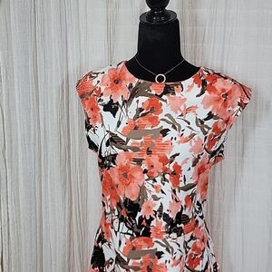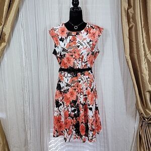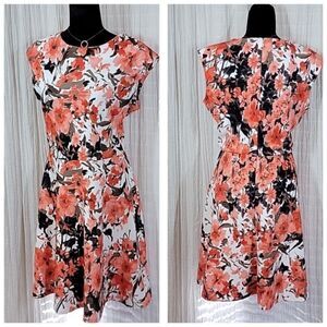 Tiani B Coral Floral Cap Sleeve A-Line Dress