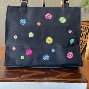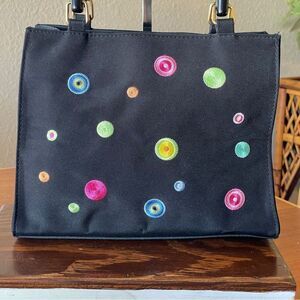 Tianni Retro Mod Handbag Purse Black With Multicolored Embroidered Dots